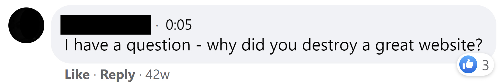 - “…why did you destroy a great website?”