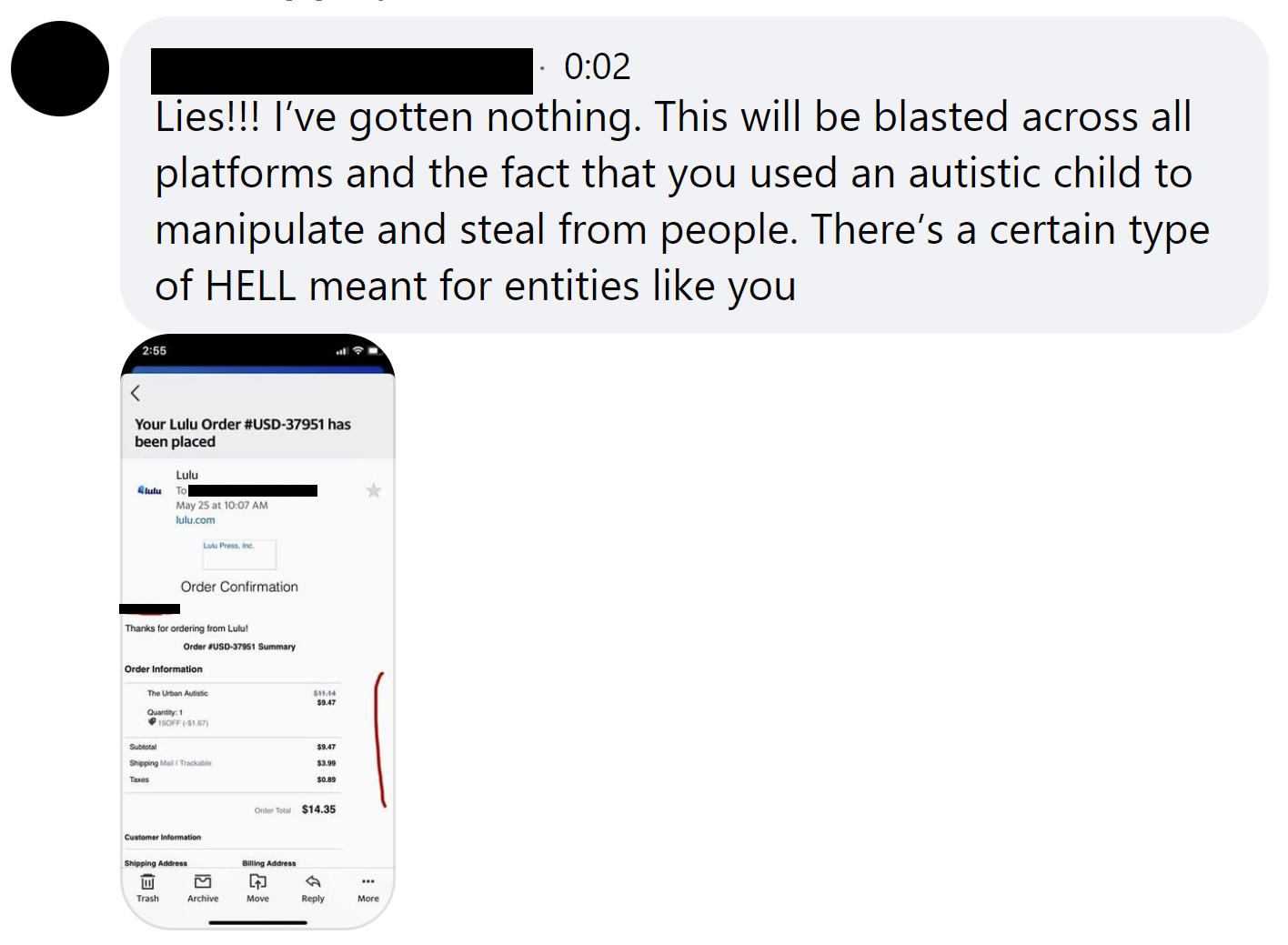 - “I would never buy from Lulu.com again.”