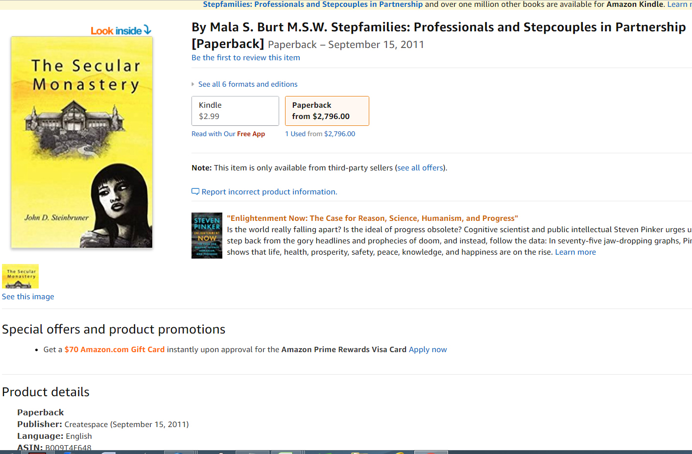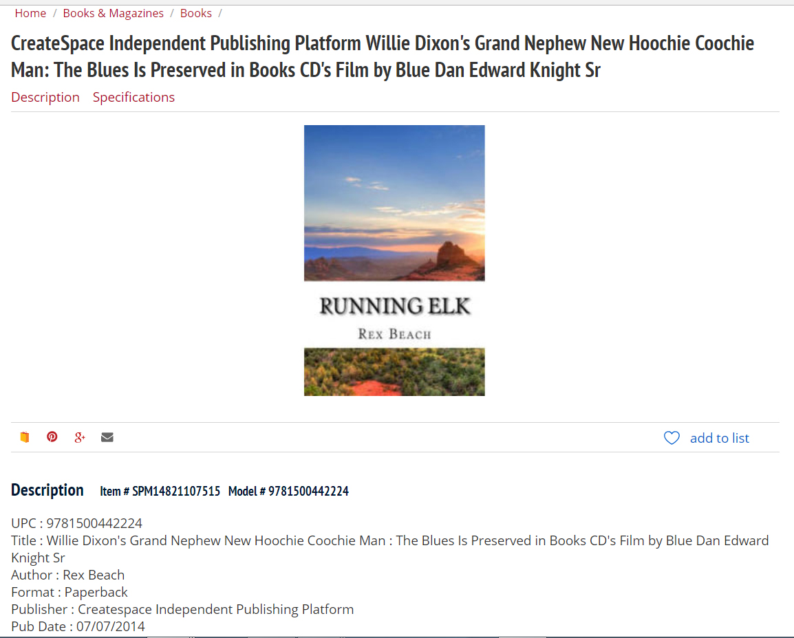 And, here’s another CreateSpace book with the wrong cover featured. Notice the price. $2796.00!