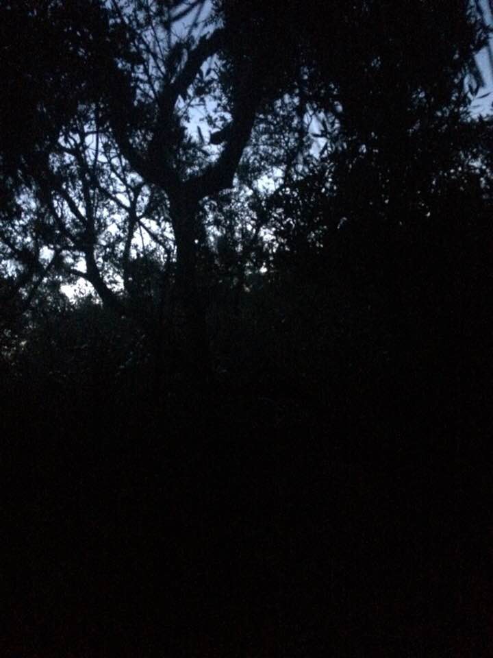 It was blacker than black out. No moon. No stars. Nothing. I swear I could hear the blood gurgling rhythmically through the arteries near my ears. I could hear every single animal sound. I could hear every insect. I could hear the flapping wings of a bird overhead. I could even hear a hog snorting and rooting around somewhere to my left, out of sight.