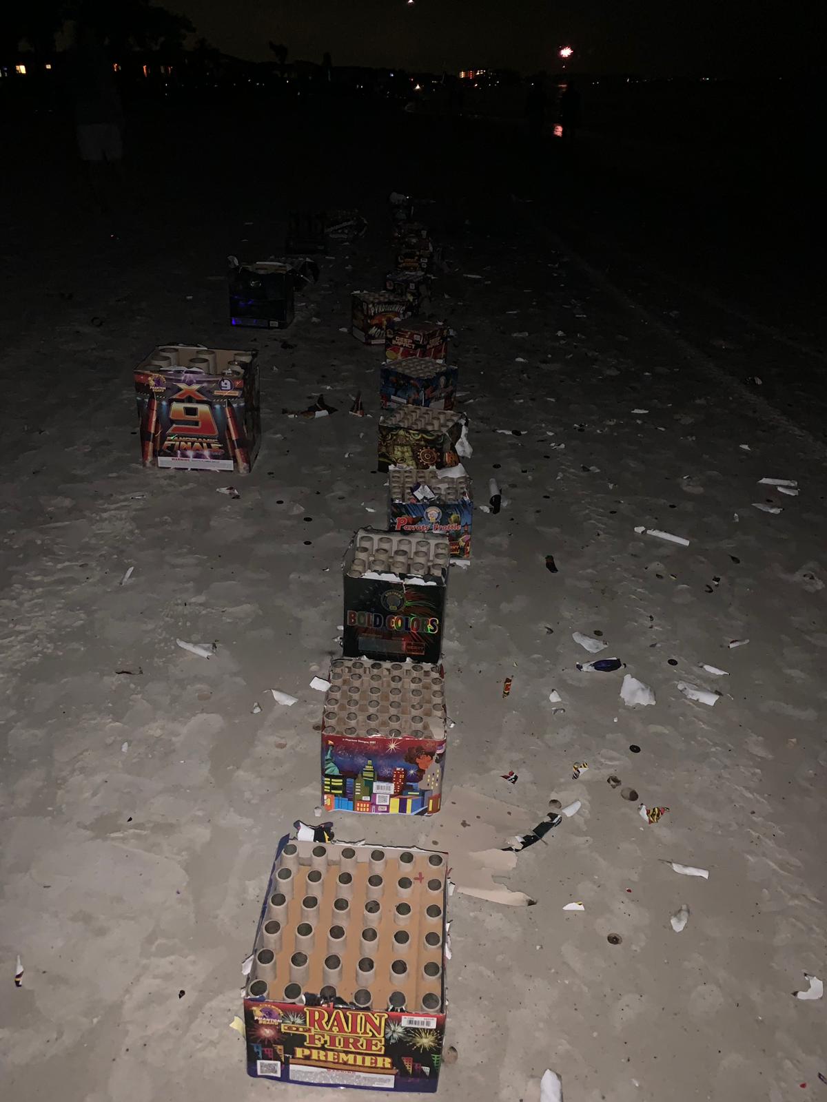 Well…this year we encountered a different officer. A younger fellow who was, I suppose, friendly enough, but ignorant of the law. There were thousands of people on the beach and a half dozen or so were setting off what I can only describe as mortars. Professional grade fireworks! All the rich folks who live on the island can afford those.