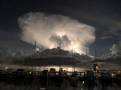 Last night, one of the boats on our dock got struck by lightning. No injuries and we haven’t heard about any damage. We think the owner was out of town. They obviously have a lightning protection system on board. I just happened to be looking outside when it hit. Man oh man, those lightning bolts look REALLY big when they strike that close! Even though I saw the lightning, the instant thunder aftershock made me jump about a foot off the bed. Then, I had to go change my underwear…