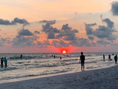 Last weekend we wanted to avoid downtown altogether so, after the Summer 24-Hour Short Story Contest ended, we went to St. John’s Pass with the boys. We enjoyed eating out by the water, and then going to the beach for sunset. The weather participated and we had a blast! 🙂