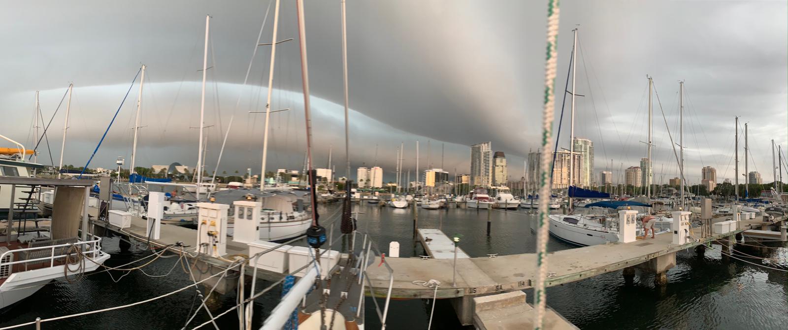 Only after it was all over did I look at the details in the original tornado warning weather alert. About three paragraphs down, it stated that downtown St. Pete was right in its path. Had I seen that, I’d have gotten us all off the boat, and to the captain’s lounge, instead of guffawing at that awesome cloud formation.