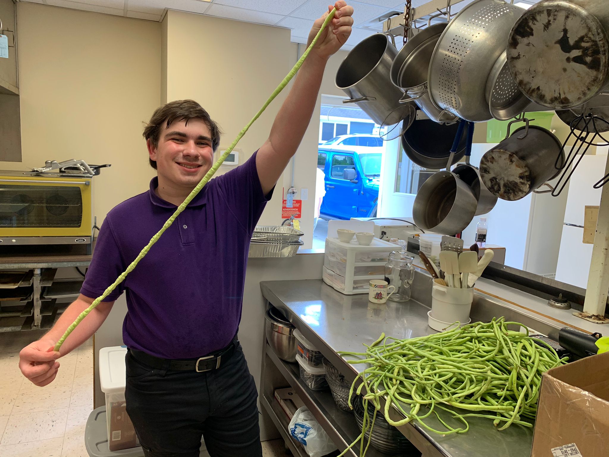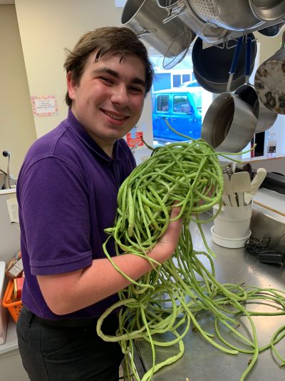 Below is a picture of Mason’s Taiwan Yard Long Beans. He planted the seeds for those in the community garden several weeks ago. The community garden produce is harvested weekly, and donated to local food banks, a senior center, and to needy families through local schools. While Mason will be pulling these enormous beans from the community garden for the next couple of months (or more!) this was his first harvest.