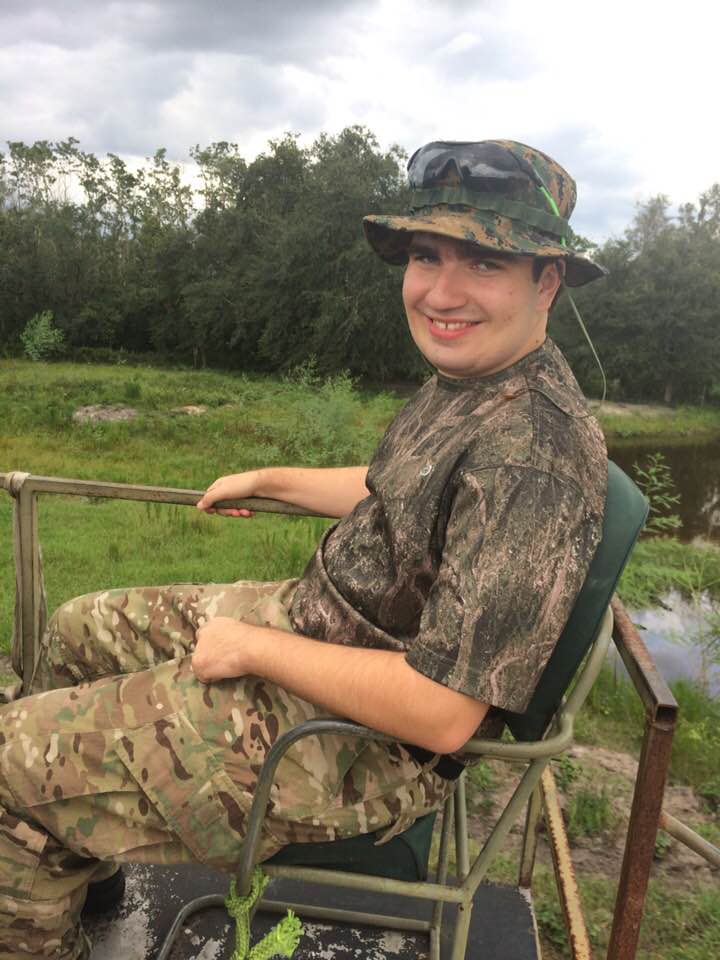 After breakfast that morning, Max was taken back out in the woods by the guides (three of them this time). They also had a dog. We later heard that they chased a HUGE trophy hog with large tusks but it was so hot that the dog got overheated. Max thought it was cool that they had a tracking collar on the dog so they could find him if he chased a hog too far away. The property is HUGE! They showed Max the hog cemetery, which is actually a pile of discarded bones. Max found some tusks (ewww!!) and put them in his pocket (double ewww!!). He got skunked once again but he didn’t mind. He was having a BLAST! Max LOVES being in the woods.