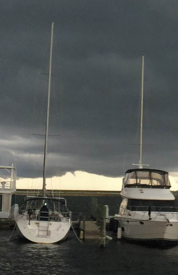 It’s a good thing we got our leaky hose fixed (the one that tried to sink us!) last week because we’re staring down the barrel of a developing tropical system that’s supposed to bring us some pretty hairy weather from tomorrow morning through Tuesday night. The governor has asked the Florida Fish and Wildlife Conservation Commission to prepare the state’s high water vehicles and other flood response resources. While a very high tide for an extended period of time is a concern for liveaboards, we’re not terribly worried about flooding from rain…except for the vehicles in the marina parking lot.