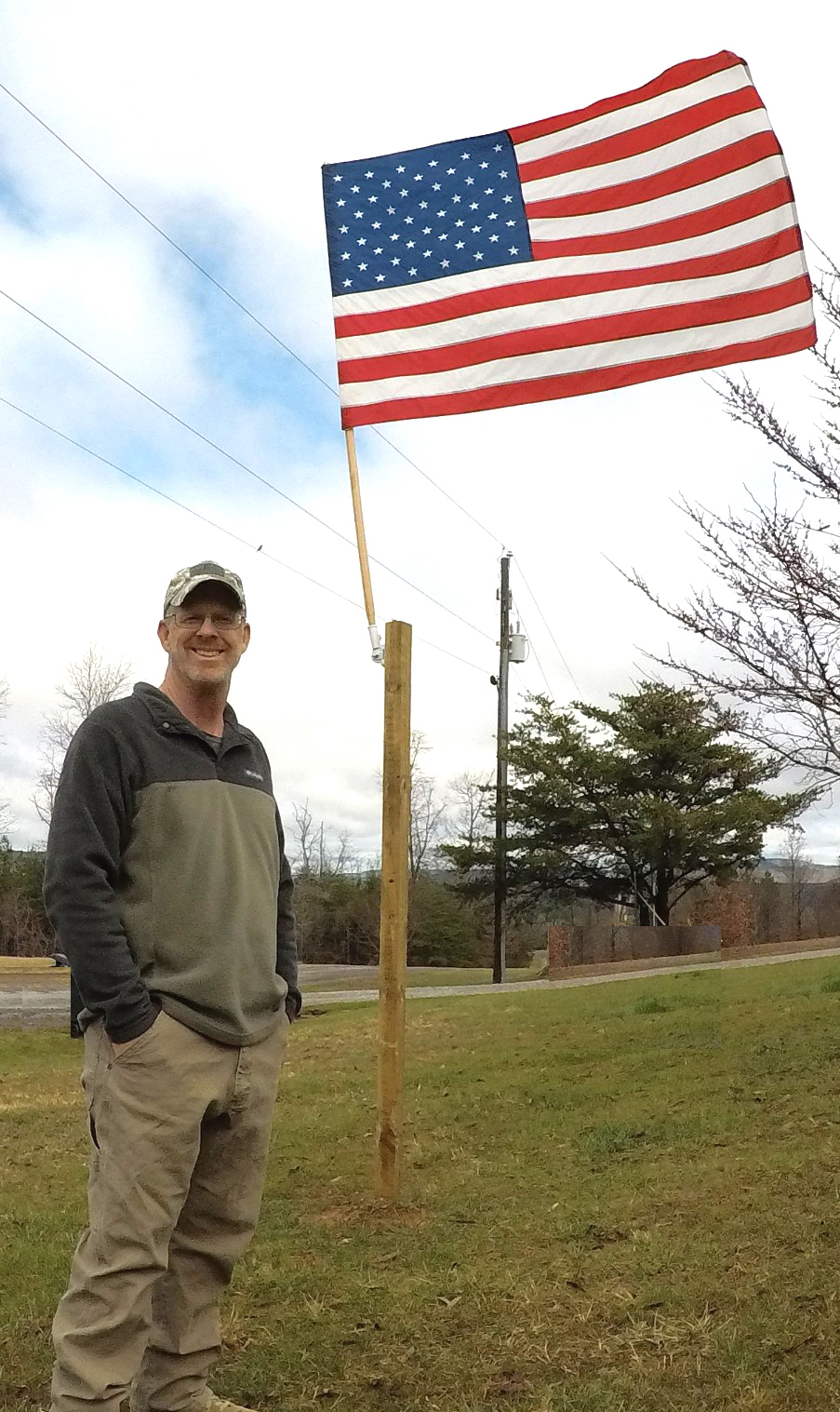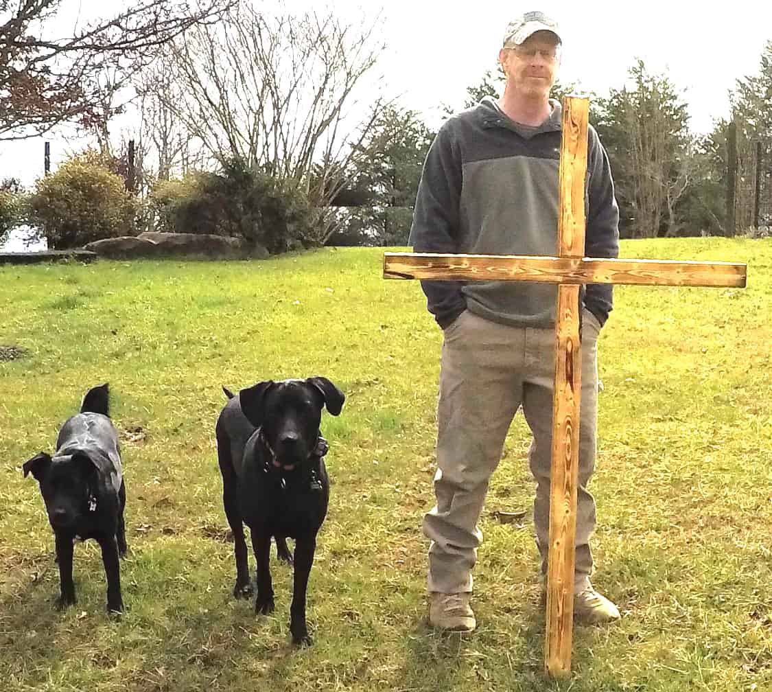 Just to make sure Psycho could see the flag, the cross, and the sign, day and night, Brian also put solar powered spotlights on everything. Heh…
