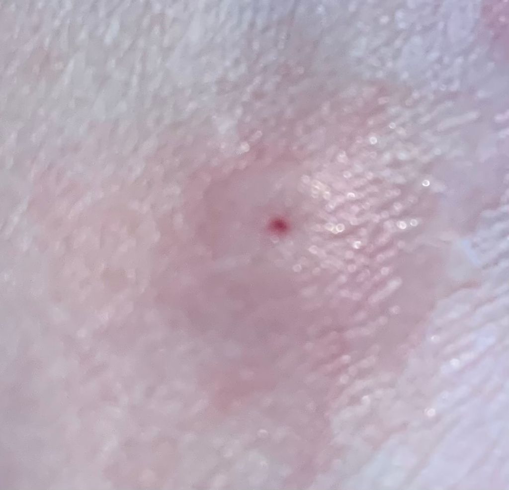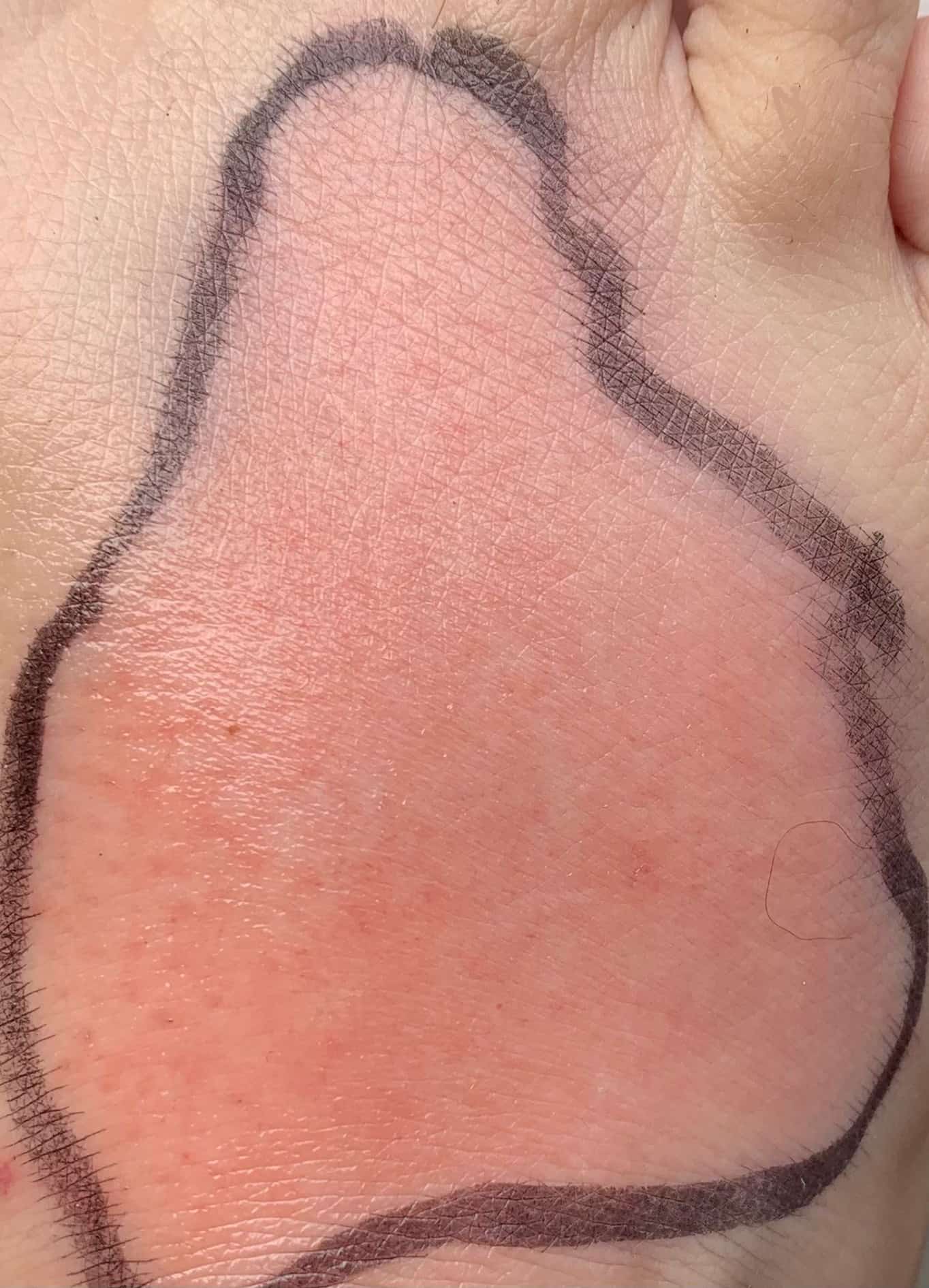 Still hoping for a miracle, I decided to give it one more day. The next morning, Brian drew another line around the red parts. I told him the previous line was giving me anxiety so he made a nicer line, and made it into a heart instead of Africa. The redness extended outside of the heart but we’d still know if it was spreading.