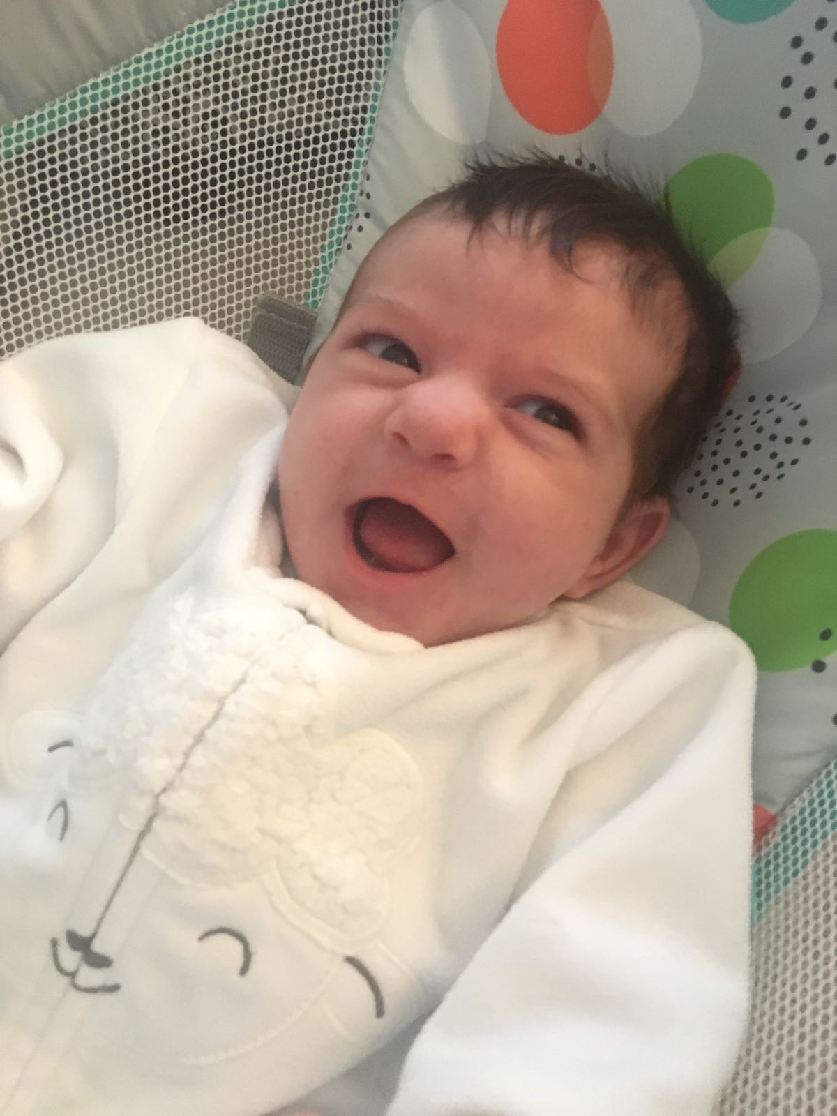 Is it just me or does this newborn look like a toddler? And, look how early she’s smiling!! 🙂