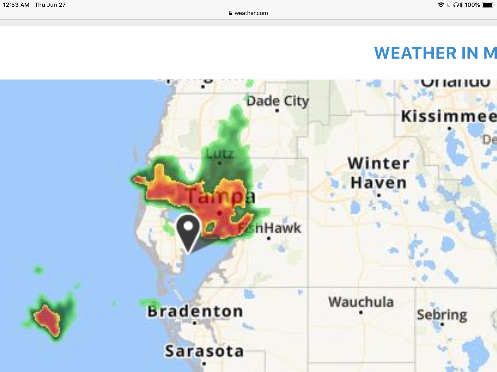 We added a line from a starboard side piling to the winch in the cockpit to take some of the pressure off the other lines. We then sat down and looked at the sky during each lightning strike, scanning the horizon for a funnel. Then, we ducked down below when big, fat, cold raindrops started pelting us, and checked weather.com. It was a monstrous red blob and I knew we wouldn’t be going to bed anytime soon.