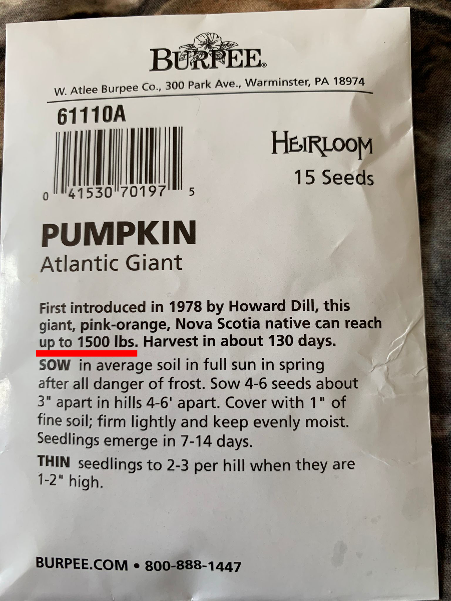 Last year, for our annual family pumpkin growing contest, we planted Big Max pumpkin seeds. The did okay (the biggest pumpkins we’ve grown so far) but they definitely were not huge. This year, I’ve been doing a lot of reading, and watching a lot of videos by record breaking pumpkin growers. I learned that Atlantic Giant Pumpkin Seeds are what we need. And, they arrived this week!