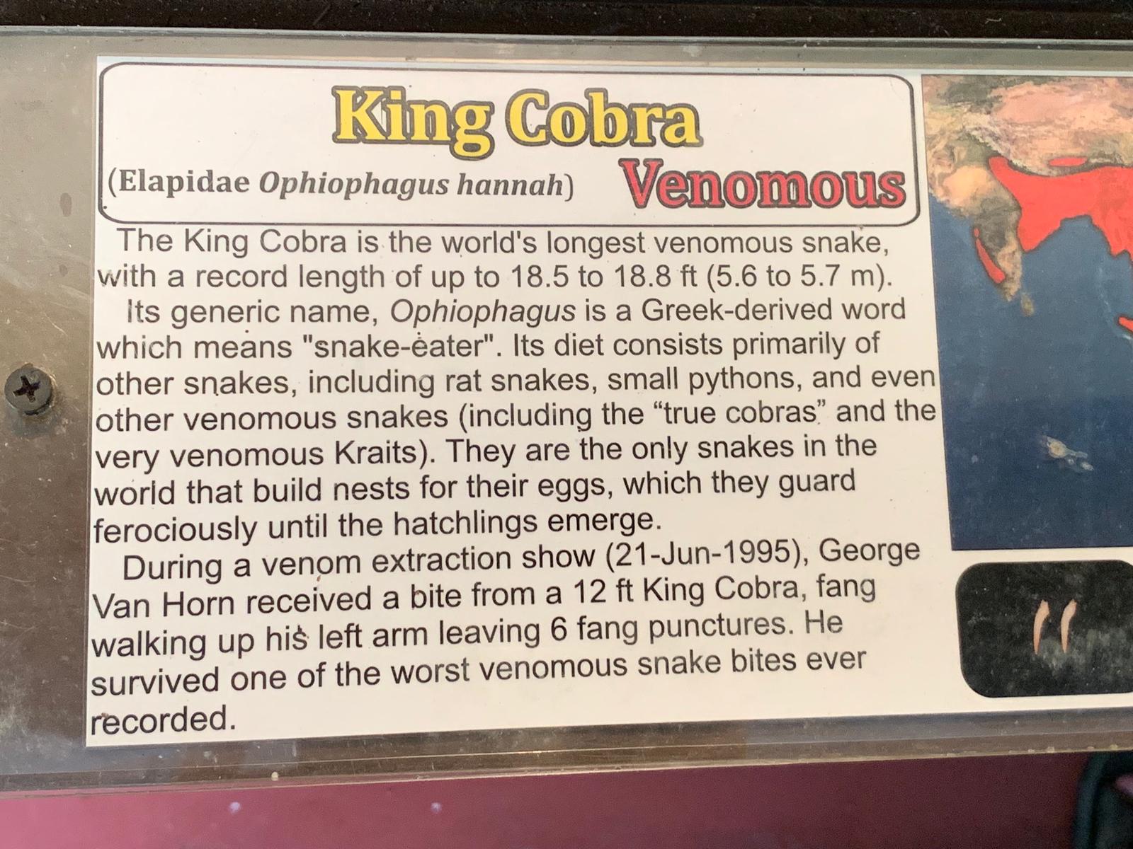 I recorded a video of him extracting venom from another king cobra. He grabs the critter with his bare hands. You can view the video RIGHT HERE. (And, yes, those are modified golf clubs they’re using!)