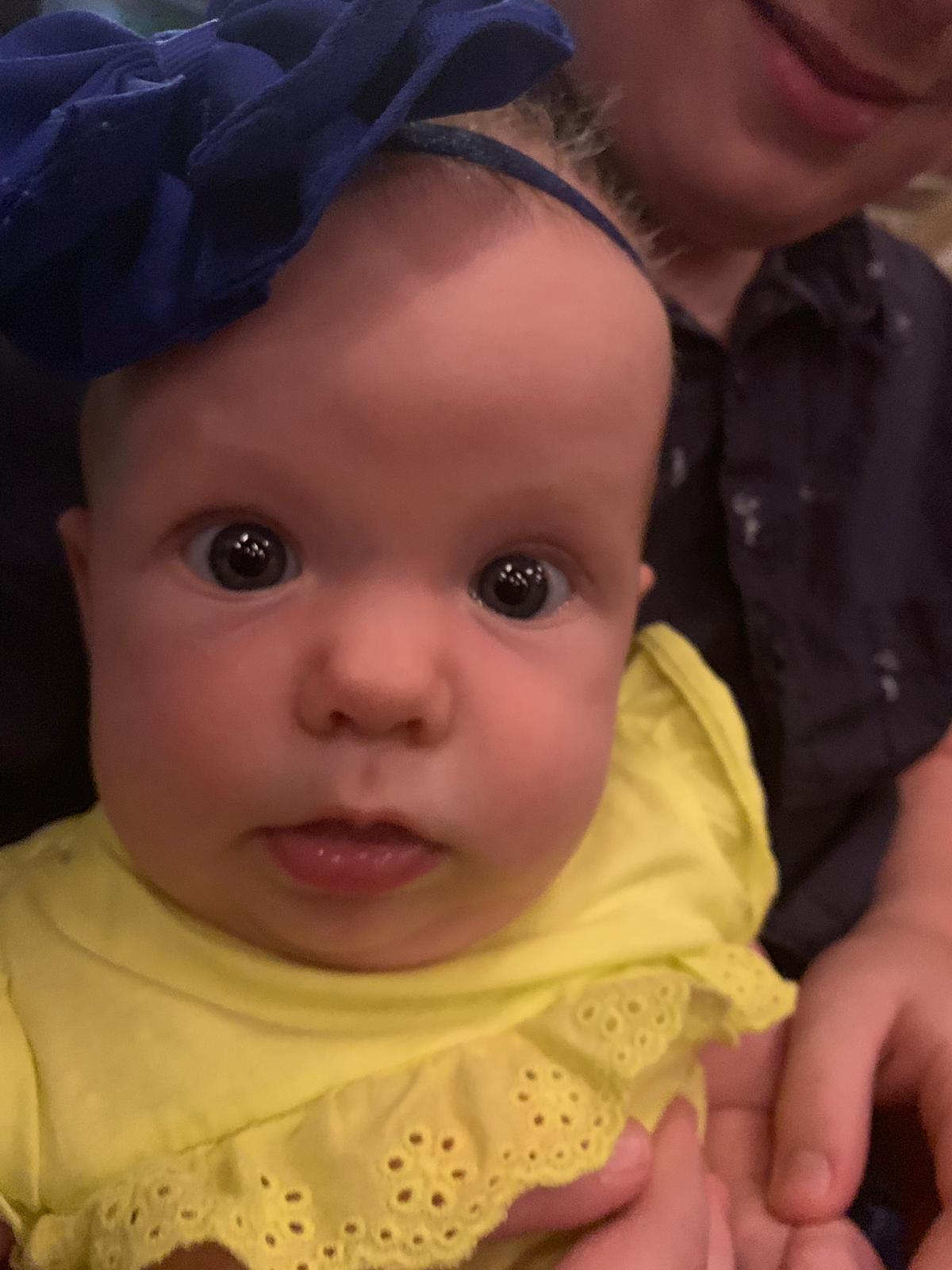 In other news, we had two big family dinners over the past two weeks. We have three family birthdays that occur within a month of each other. Max turned 18, Frank turned 27, and Zach turned 33. All our babies are growing up!! I just have to share two pictures I took of our 3-month-old granddaughter, Mackenzie. In the second photo, she’s obviously sucking in her jowls. I know…because I frequently do that with my stomach. 😉